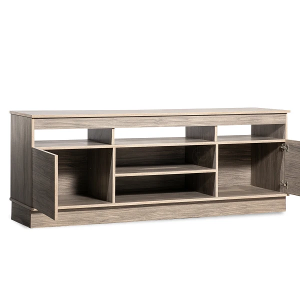 Rack para televisón de estilo combinado entre moderno y tradicional. Con estantes y puertas color pinot, que te permiten dar un tode de estilo a tu living.