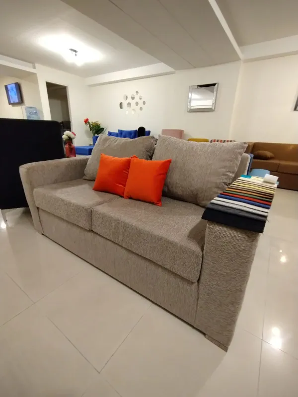 Tapizado en material suave y resistente, ofrece comodidad con respaldo y asientos bien acolchados.